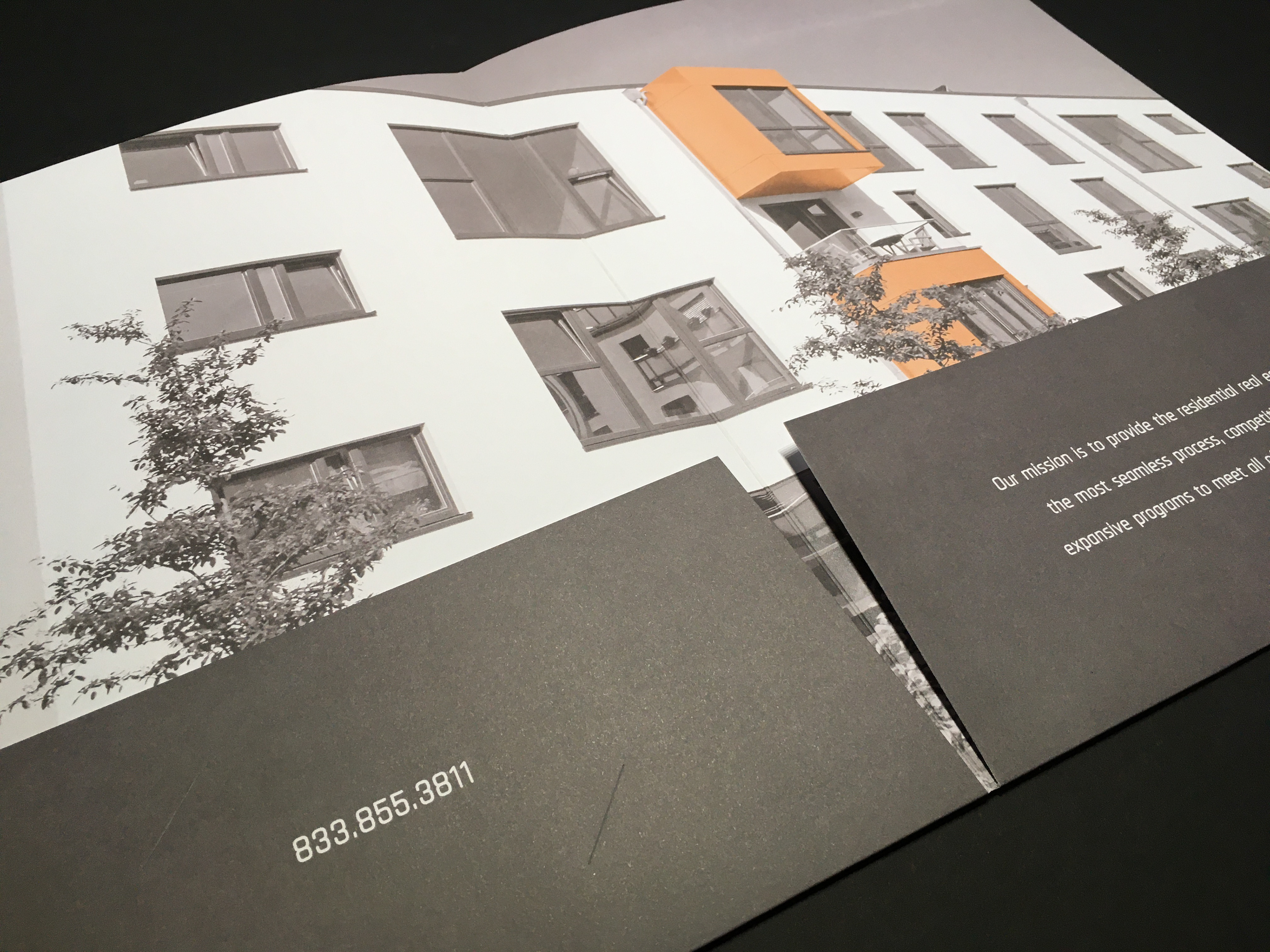 Logo design and 9 x 12" pocket folder used by agents to hold information packets for their clients